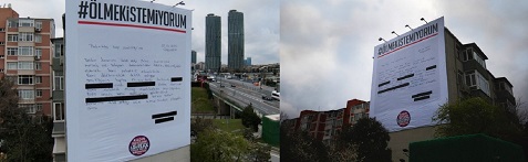 2010 yılından bu yana kadın cinayeti verilerini kamuoyu ile paylaşan Kadın Cinayetlerini Durduracağız Platformu için hazırlanan kampanyada kadınların ‘Ölmek İstemiyorum’ diyerek verdiği dilekçe paylaşılarak kadınların vermiş olduğu yaşam mücadelesine vurgu yapılıyordu.